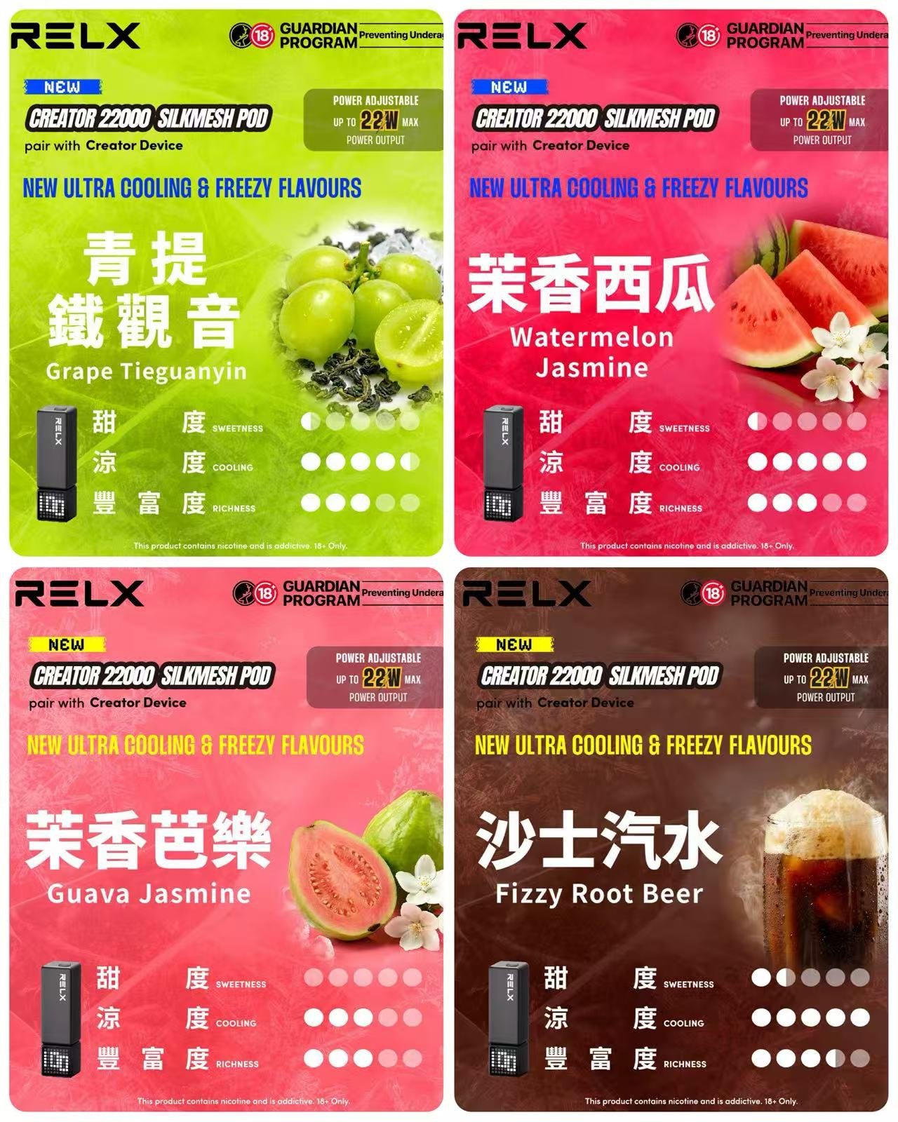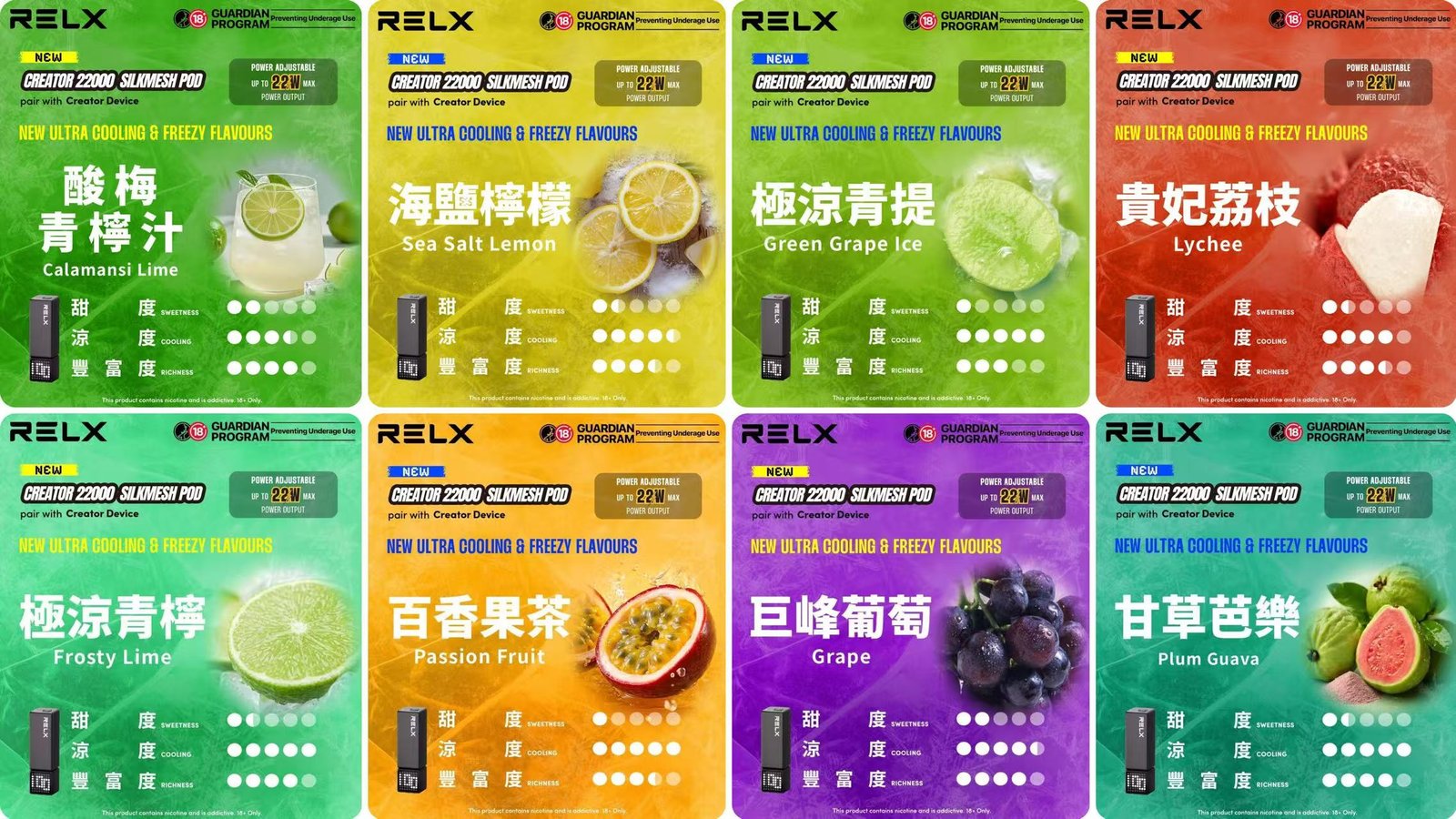 一次加滿即可滿足長時間使用,最高支援 22,000 口,大幅減少頻繁更換。搭配 RELX 精選的十種人氣風味,帶來豐富的味覺驚喜。