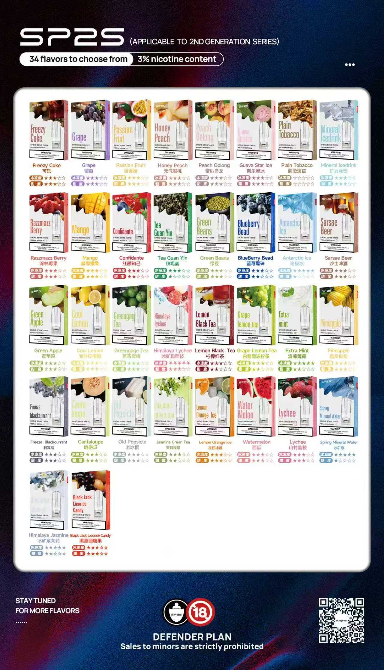 SP2S 煙彈以 多樣口味選擇 與 穩定細膩的口感表現,